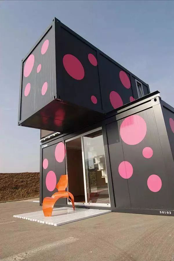 其粉色斑點立面展現了其多功能性,更好的表現自我,所以其他人能看到你真實的內心。室內很有意境但是極簡主義的設計,上層能通過可調整的樓梯進入。